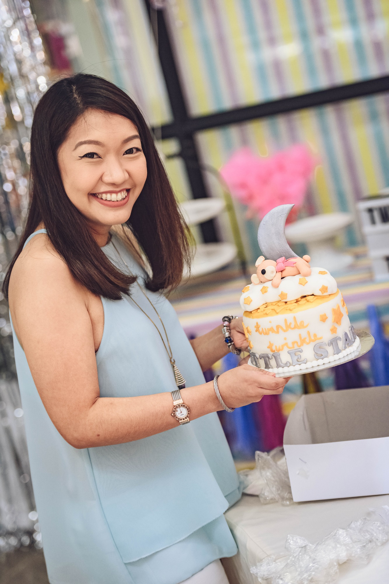 The theme of this party was ‘Twinkle, Twinkle, Little Star,’ and it truly was a stellar affair! Our friend Punky said something like this: “Mike and Nadine had a space-themed wedding, and out of their cosmic love, this little star will be born.” It really was the most fitting theme for our little star girl’s party!
